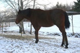 The view from my window is not pretty and I am very upset with my goats, although I don’t think they are all guilty. Poor Fasci is the victim of bored goats or more accurately her tail is. What was once a beautiful long flowing tail is now shortened by about 30 inches! I have no idea what made the goats decide she needed a bobtail, but they tackled the job with enthusiasm and finished the job all in one night. Fasci looks so different with the new do and it does really show off her well muscled hindquarters. I may have to use bitter apple spray if they continue to chew. Horses use their tail to help swish away flies in the summer. Hopefully she will grow a few inches of new tail before fly season. One thing for sure, bored goats ~ never a good thing.